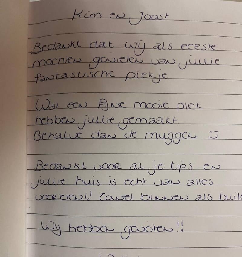Bedankt dat wij als eerste mochten genieten van jullie fantastische plekje.